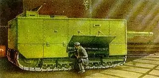 1914—1915 | 1915 | 1 | Бронированное передвижное боевое устройство колоссальных размеров, разработанное инженером Н. Лебеденко. В разработке также принимали участие Н. Е. Жуковский и его племянники, Б. С. Стечкин и А. А. Микулин[34]. Строго говоря, танком объект не являлся, представляя собой колесную боевую машину. Самая крупная бронированная сухопутная боевая машина из когда-либо построенных. Постройка и испытания танка проводились в 1915 году, однако по результатам испытаний был сделан вывод об общей непригодности танка к использованию в условиях боя, что привело к закрытию проекта. Построенный экземпляр в боях не применялся и был впоследствии разобран на металлолом. |