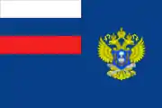 Флаг Федеральной службы по финансовому мониторингу (Росфинмониторинг) | Полотнище синего цвета. В крыже — флаг РФ. Справа внизу — эмблема Росфинмониторинга. | |