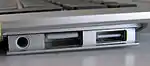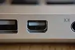 ![]() Гнездо/мама Micro-DVI (крайнее справа) в MacBook Air |