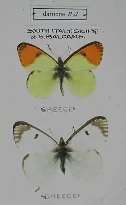| Anthocharis damone syra Verity, 1911 | כתום-כנף צהוב | ![]() |