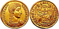 1 марта 317 — 22 мая 337 (WC) 22 мая 337 — 340 (Галлия, Испания и Британия) в соправлении с братьями Констанцием II и Константом, погиб в битве с Константом |