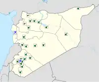 | Эш-Шайрат | Эш-Шайрат | Хомс | Военный | 0 | 2 | 40 | 675 Эскадрилья МиГ-23МФ 677 Squadron Су-22M-4 685 Squadron Су-22M-4 |
