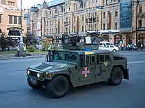 HMMWV M1114 UAH — 30 машин поставлено из США в марте 2015 года, 28 из них переданы на вооружение Сухопутных войск, 20 машин поставлено из США в январе 2021 года.[39][40][41][42]. Оснащены комплектами дополнительного бронирования FRAG, защищенными пулеметными установками MCTAGS[38] и пулемётами ДШКМ[33]. HMMWV М1097А2 в модификации ЛРМЗ — 40 машин поставлено из США в 2001 году[43]. Из них 1 была разобрана для изучения, часть из оставшихся 39 — бронированны и дополнены оборудованием на Львовском ремонтно-механическом заводе[44][45]. В 2015 году 1 из бронированных машин была модифицирована компанией «АвтоАльянс»[46]. Оснащены пулемётами НСВ-12,7 «Утёс»[47]. | ||