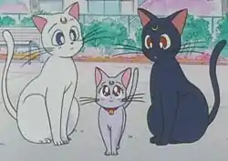 В метасерии «Сейлор Мун» есть три кошачьих персонажа, выступающих советниками для своих хозяев. Все они умеют разговаривать и на лбу у них изображен полумесяц. Двое старших котов, Луна и Артемис, жили тысячелетия назад до основного сюжета в Лунном королевстве и выступали советниками для королевы Серенити. Третья, Диана, намного моложе и изначально родилась на Земле. Все они носят имена греческих и римских богинь Луны (даже Артемис, несмотря на то, что он кот, а не кошка).