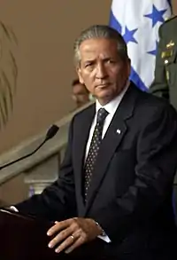 В настоящее время главой государства и правительства является Президе́нт Респу́блики Гондура́с (исп. Presidente de la República de Honduras), неофициально — Президе́нт Гондура́са (исп. Presidente de Honduras), согласно конституции — Конституцио́нный президе́нт Респу́блики Гондура́с (исп. Presidente Constitucional de la República de Honduras)[1]. В соответствии с действующей конституцией срок полномочий президента начинается 27 января после даты избрания и в этот день истекает срок полномочий предыдущего президента. Срок полномочий как президента, так и трёх избираемых совместно с ним заместителей, составляет четыре года, с правом переизбрания[комм. 2][2].