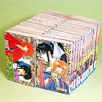 Первая глава манги появилась в журнале «Weekly Shonen Jump» в 1994 году. Через пять лет, к моменту завершения, манга насчитывала 255 глав[1]. Издательство Shueisha выпустило эти главы в 28-ми томах, первый из которых вышел 2 сентября 1994 года[2], а последний — 4 ноября 1999 года[3]. Позже манга была переиздана в расширенном формате (т. н. «кандзэнбан»): в новом варианте она состояла из 22-х томов, но содержала разнообразные дополнительные материалы[4]. У манги имеется небольшое продолжение — одна глава под названием Yahiko no Sakabatou (яп. 弥彦の逆刃刀 Яхико но сакабато:, Сакабато, принадлежащее Яхико), которая была опубликована уже после завершения манги и не вошла в первое издание, но была включена во второе[5]. В США правами на издание владеет компания Viz Media, выпускавшая мангу на английском языке в 2003—2006 годах[6][7], а позже переиздавшая её в новом формате (VIZBIG Edition)[8]. В России манга «Rurouni Kenshin» не лицензирована (как следствие, все переводы названий глав и томов в этой статье не являются официальными).