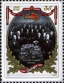 17 ноября 1918 года на основе созданного 16 (29) ноября 1917 года латышскими национальными партиями Латышского временного национального совета (латыш. Latviešu Pagaidu Nacionālā padome), объединившегося с «Демократическим блоком» (латыш. Demokratiskais bloks), был сформирован Народный совет Латвии (латыш. Latvijas Tautas padome), ставший временным законодательным органом и провозгласивший на следующий день независимость Латвийской республики. Тогда же было сформировано коалиционное Временное правительство (латыш. Pagaidu valdība) во главе с Карлисом Улманисом[14].