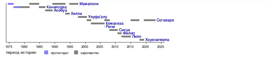 Внутреннее самоуправление в протекторате Соломоновы Острова было введено 2 января 1976 года. В 1977 году в Лондоне состоялись финансовые и конституционные переговоры, результатом которых стало соглашение о том, что королева останется главой государства, независимость которого была провозглашена 7 июля 1978 года, когда Питер Кенилореа стал первым премьер-министром, а постоянный секретарь Министерства транспорта и связи Баддели Девеси был избран Законодательным собранием первым генерал-губернатором[10].