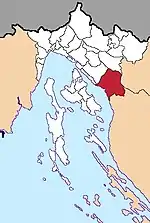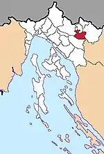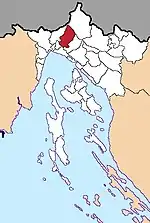 | Равна-Гора хорв. Ravna Gora | ![]() | 82,00 | 2724 | 2430 | 45°22′25″ с. ш. 14°56′16″ в. д. | хорваты — 97,49 % | ![]() | [76][77] |