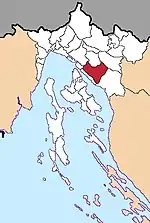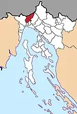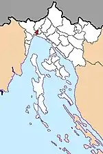 | Клана хорв. Klana | ![]() | 94,00 | 1931 | 1975 | 45°26′51″ с. ш. 14°22′33″ в. д. | хорваты — 94,28 % словенцы — 1,42 % сербы — 1,27 % | ![]() | [54][55] |