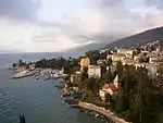 | Ловран хорв. Lovran | ![]() | 21,00 | 3987 | 4101 | 45°17′32″ с. ш. 14°16′35″ в. д. | хорваты — 85,95 % сербы — 3,10 % итальянцы — 1,66 % словенцы — 1,49 % босняки — 1,00 % | ![]() | [58][59] |