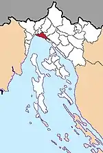| Кострена хорв. Kostrena | ![]() | 12,00 | 3897 | 4180 | 45°18′27″ с. ш. 14°29′55″ в. д. | хорваты — 92,22 % сербы — 1,87 % | ![]() | [56][57] |