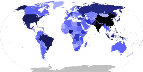 | № | Страна | Население | Дата | % от населения Земли | Источник |