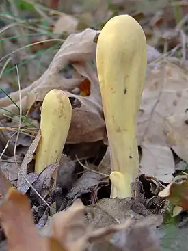 Клавариадельфус пестиковый | Clavariadelphus pistillaris (L.) Donk, 1933 | Плодовые тела булавовидные, съедобные, до 17 см высотой и 1—5 см в диаметре, жёлтые или красновато-бурые. Ткань губчатая, белая или розовая, на срезе красновато-бурая. Ножка к основанию суживается. Споры белые или светло-жёлтые. В Амурской области встречается в Зейском, Магдагачинском, Свободненском районах. |