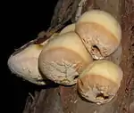 Криптопорус вольвоносный | Cryptoporus volvatus (Peck) Shear, 1902 | Плодовые телв диаметром 1—5 см и толщиной 1—3 см, шарообразной формы, сплюснутые снизу. Мякоть мясистая, бледно-желтая. Споры гладкие, бесцветные. В В Амурской области встречается единичными экземплярами в Зейском, Магдагачинском районах, в урочище «Мухинка». |