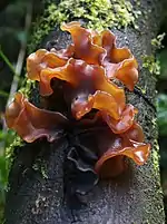 Аурикулария волосистая | Auricularia polytricha (Mont.) Sacc., 1885 | Плодовые тела съедобны, уховидной формы, на ощупь студенисто-резинистые. Наружная поверхность плодового тела покрыта серебристыми волосками. Обитает на пнях и валежнике. В Амурской области встречается в Хинганском заповеднике и в окрестностях Благовещенска. Вымирает в связи с антропогенной нагрузкой; возможно, в связи с изменением температуры окружающей среды. |