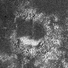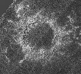 ![]() Изображение углеводородных озёр на Титане, полученное радаром «Кассини» 22 июля 2006 (цвета условные) |