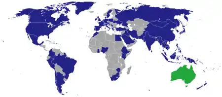Список дипломатических миссий Австралии — после получения Австралией прав доминиона в 1901 году длительное время её внешняя политика была тесно увязана с проводимой британским кабинетом политическим курсом. К 1939 году Австралия имела лишь два представительства за границей — в Лондоне (так называемый Австралийский дом) и в Вашингтоне, при британском посольстве. К 1940 году к ним прибавились миссии в Оттаве и в Токио, а за годы Второй мировой войны — также в Москве, в Чунцине и в Нумеа. В настоящее время Австралия имеет более 80 дипломатических представительств за рубежом. Австралия заключила особое соглашение с Канадой о взаимной защите интересов, на основании которого в 19 канадское представительство в городах, где отсутствуют австралийские миссии, представляют также интересы Австралии. Соответственно 12 австралийских представительств осуществляют подобную работу в пользу Канады там, где нет канадских миссий. В странах Британского содружества, в которое входит и Австралия, её посольствами руководит верховный комиссар в ранге посла.