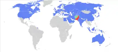 Список дипломатических миссий Афганистана — после прихода к власти в Афганистане движения Талибан посольства этого государства находились лишь в трёх странах — в Пакистане, Саудовской Аравии и в ОАЭ. После террористической атаки 11 сентября 2001 года в Нью-Йорке Пакистан, Саудовская Аравия и ОАЭ закрыли эти миссии в своих странах. В настоящее время, уже после изгнания талибов из Афганистана, это государство имеет свои представительства в 43 странах.