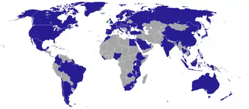Список дипломатических миссий Ирландии — в настоящее время Ирландия поддерживает дипломатические отношения со 161 государством. В этих странах она имеет 74 миссии, из них 55 посольств, 8 миссий при международных организациях и 8 генеральных консульств.