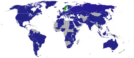 Список дипломатических миссий Швеции — в настоящее время Швеция располагает 78 посольствами и 13 генеральными консульствами за рубежом. Швеция была первым государством Запада, открывшим своё представительство в КНДР. В 2010 году шведским правительством было принято решение о частичном сокращении количества своих посольств.