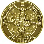| 20 лет независимости Украины | 100 | золото 900 проба | 31.1 | 32.0 | пруф | гладкий с заглубленными надписями | 1 000 | ![]() |