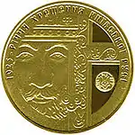 | 25 лет независимости Украины | 250 | золото 900 проба | 62,2 | 42,0 | специальный анциркулейтед | гладкий с заглубленными надписями | 400 | ![]() |