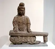 - Барабан или крокодиловая кожа: Барабаны из глины, датируемые периодом 5500 — 2350 гг. до н. э., были обнаружены на неолитических стоянках на большой площади, от провинции Шаньдун на востоке страны и до провинции Цинхай на западе. В письменных источниках барабаны относят к шаманским принадлежностям, они часто используются в ритуальных церемониях. Барабаны, покрытые крокодиловой кожей для церемониального использования, упоминаются в Ши-Цзин. В доисторическую эпоху аллигаторы, возможно, жили вдоль восточного побережье Китая, включая южный Шаньдун. Но спустя некоторое время, они были почти полностью истреблены из-за кожи, которую использовали для изготовления барабанов и сапог. Древние барабаны, сделанные в виде деревянного каркаса, покрытого крокодиловой кожей, встречаются в археологических раскопках в Даэнкоу (4100 — 2600 до н. э.), а также в нескольких местах группы неолитических культур Луншань (3000 — 2000 до н. э.) (провинция Шаньдун) и Таоси (2300—1900 гг. до н. э.) в южной части Шаньси.[11]