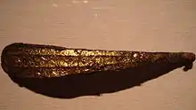 - Весло: Гребные вёсла используются с раннего неолитического периода. Каноэ-образные керамические и шесть деревянных вёсел, датируемые 6000 г. до н. э., были обнаружены в культуре Гемуду (en:Hemudu culture), провинция Чжэцзян.[12] В 1999 году весло размером 63,4 см (2 фута) в длину, датируемое 4000 г. до н. э., было также обнаружена в префектуре Исикава, Япония.