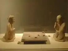 - Любо — древняя китайская настольная игра: ныне несуществующая настольная игра любо по большей части остаётся загадкой для современных учёных, которые ещё не определили, как именно в неё играли. Связь как с азартными играми, так и с гаданием делают её уникальной.[186][187] Две самые древние доски для любо найдены при раскопках погребального комплекса царства Чжуншань вблизи города Шицзячжуан в гробнице 3. Аналогичные находки, датируемые IV в. до н. э., сделаны в поселении Цзянлин царства Чу в гробницах 197 и 314.[188] Известно, что в эпоху династии Хань возник спор по поводу пророчества чуда как результата игры в любо, привёдший к драке между наследником престола Цзин-ди и Лю Сянем 刘贤/劉賢, в которой последний был убит. Как следствие, его отец Лю Пи 刘濞/劉濞, правитель У, поднял Восстание семи царств против централизации власти Хань (154 до н. э.). Историк Майкл Леви считает, что в набор фишек любо входили символы китайских пяти элементов У-син.[187]