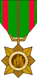 | Ширина 9.5 мм, длина 35 мм. | Гражданская награда вручается правительством Южного Вьетнама, была создана в 1964 году, может быть вручена любому военному, за выдающиеся гражданские заслуги перед государством или людям находящимся на гражданского службе. Медаль имеет два класса, первый класс предназначен для офицеров, второй для прочего персонала. Две награды разного класса носить нельзя. |