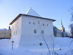 | Спасо-Преображенский монастырь | Ярославль | Памятник архитектуры XVI—XIX вв. Каменные стены и башни построены в 1560-е — 1580-е гг и полностью перестроен в 1621—1646 гг. | После многочисленных перестроек XIX в. от первоначальных стен остались лишь участки стен и две башни[25]. Этот монастырский комплекс иногда называют «кремлём» Ярославля. Памятник ЮНЕСКО. | ![]() |