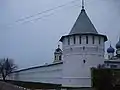 | Спасо-Евфимиев монастырь | Владимирская область, Суздаль | Архитектурный ансамбль XVI—XVII вв. Каменные стены длиной около 1200 м и башни возведены в 1670-е — 1680-е гг.[18][19]. | Монастырь фактически был цитаделью города, потому что собственно Суздальский кремль не имел каменных укреплений. В царские, позже в советские времена, он служил тюрьмой. Памятник ЮНЕСКО. | |