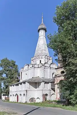 | Троицкая церковь в Александровой пустыни | Ярославская область, Александрова пустынь | До 1678. | Сохранились руины. Трёхшатровый храм с трапезной и массивной шатровой колокольней. Пристройки уничтожены в советское время, верх рухнул в 2007 г. | ![]() |