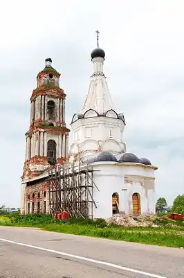 | Богоявленская церковь | Костромская область, Красное-на-Волге | 1592. | Выстроена в вотчине Д. И. Годунова. Трёхапсидный кубический храм с четырьмя ярусами кокошников на подклете, с папертью и двумя малыми купольными одноапсидными приделами. Небольшая шатровая колокольня — 1770-х гг. | ![]() |