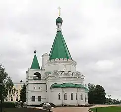 | Собор Михаила Архангела | Нижний Новгород | 1628 - 1631. | Выстроен мастерами Л.С.Семёновым-Возоулиным и Антипой Константиновым на фундаментах храмов XIII - XIV вв. Кубический трёхапсидный храм с массивной звонницей 1640-х гг. (переделана снаружи в XIX в.). Малый придел 1670-х гг. перестраивался, уничтожен в советское время. | ![]() |