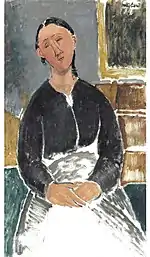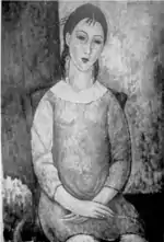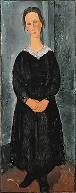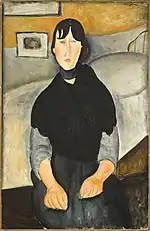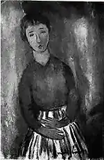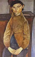 | Нищая фр. La mendiante | ![]() | 1909 | Холст, масло | 46 x 37,5 | Ceroni 20, Pfannstiel 14, Lanthemann 31, J. Modigliani да, Parisot 10/1909, Patani 25, Restellini да, Wayne да | коллекция Лоры Денье | [61][62] |