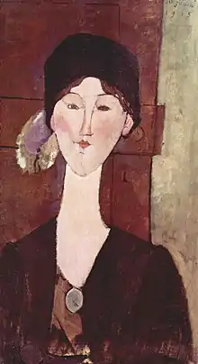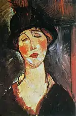 | фр. La femme au chapeau | ![]() | 1909-1911 | Картон, масло | 35 x 27 | Ceroni 26, Lanthemann 15, J. Modigliani да, Parisot да, Patani 28, Restellini да | коллекция Спенсера Хейза (Нэшвилл, США) | [72] |