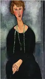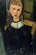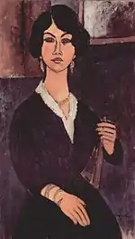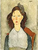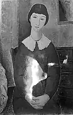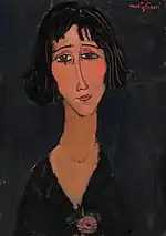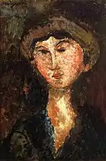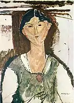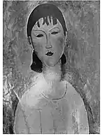 | Еврейка фр. La Juive | ![]() | 1908 | Холст, масло | 54,9 x 46 | Ceroni 9, Pfannstiel 2, Lanthemann 20, J. Modigliani да, Parisot 1/1908, Patani 11, Restellini да, Wayne да | коллекция Лоры Денье, 8 мая 2013 года продана на аукционе «Кристис» за $6 843 750 | [42][43][44] |