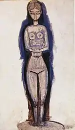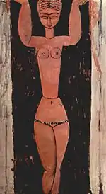 | Кариатида фр. Cariatide | ![]() | 1913-1914 | Картон, масло и цветной карандаш | 60 x 54 | Lanthemann 595, J. Modigliani да, Parisot да | Центр Помпиду (Париж, Франция) | [108][109] |