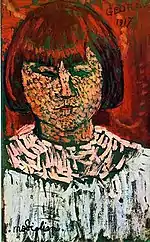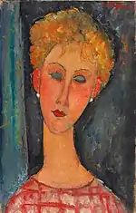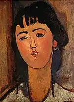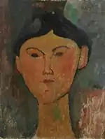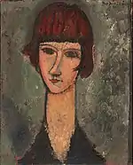 | Голова молодой женщины фр. Buste de jeune femme | ![]() | 1907 | Холст, масло | 58 x 55 | Ceroni 6, Pfannstiel 3, Lanthemann 18, J. Modigliani да, Parisot 2/1908, Patani 10, Restellini да | Музей современного искусства метрополии Лилля (Вильнёв-д’Аск, Франция) | [36][37] |