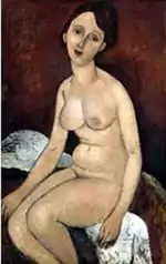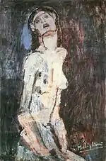 | Болеющая обнажённая фр. Étude de nu (Nu douloureux) | ![]() | 1908 | Холст, масло | 81 x 53,3 | Ceroni 8, Pfannstiel 5, Lanthemann 19, J. Modigliani да, Parisot 6/1908, Patani 13, Restellini да | частная коллекция | [40][41] |