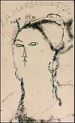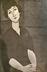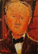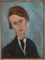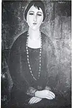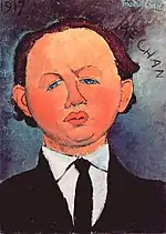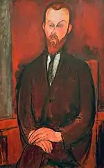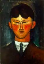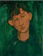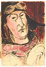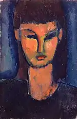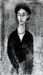 | Портрет Мориса Друара фр. Portrait de Maurice Drouard | ![]() | 1909 | Холст, масло | 59 x 44 | Ceroni 18, Lanthemann 12, J. Modigliani да, Parisot 6/1909, Patani 22, Restellini да | частная коллекция, 10 июля 2020 года продана на аукционе «Кристис» за €4 485 500 | [57][58] |