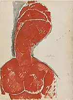 | Красный бюст фр. Le buste rouge | ![]() | 1913 | Картон, масло | 81,2 x 53,3 | Ceroni 38, Lanthemann 515, J. Modigliani да, Patani 42, Restellini да | коллекция Лилли Сафры (Лондон, Великобритания) | [99] |