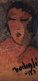 | Женская голова фр. Tête de femme (Femme au grain de beauté) | ![]() | 1906-1907 | Холст, масло | 32,5 x 24,5 | Ceroni 2, Pfannstiel no, Lanthemann 10, J. Modigliani yes, Parisot yes, Patani 6, Restellini yes, Wayne ? | частная коллекция | [26][27] |