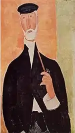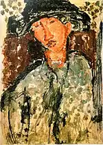 | Нищий из Ливорно (Крестьянин из Ливорно) фр. Le mendiant de Leghorn | ![]() | 1909 | Холст, масло | 65,8 x 52,4 | Ceroni 24, Pfannstiel 17, Lanthemann 32, J. Modigliani да, Parisot 1/1909, Patani 26, Restellini да, Wayne да | частная коллекция | [70] |
