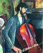 | Виолончелист фр. Le violoncelliste | ![]() | 1909 | Холст, масло | 131 x 81 | Ceroni 23, Pfannstiel 15, Lanthemann 36, J. Modigliani да, Parisot 9/1909, Patani 32, Restellini да, Wayne да | частная коллекция | [69] |