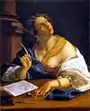 | 20 | ![]() | Maria Maddalena in estasi | Мария Магдалина в экстазе | 1613-1620 | 81 × 105 см; масло, холст | Частное собрание | Эксперты аукционного дома Sotheby's дают более раннюю датировку картины (ок. 1611)[10], считая, в том числе, что она, возможно, является и автопортретом художницы |