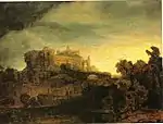 Иаков, борющийся с ангелом | ок. 1659 | Холст, масло | 137 x 116 | 268 | Картина, возможно, обрезана по всем краям. В правом нижнем углу приклеен фрагмент того же полотна с подписью Рембрандта. Многие контуры прописаны более четко поздней рукой | |