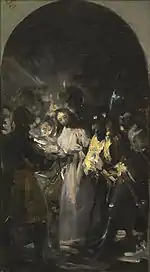 | (картина Гойи) исп. San Cayetano | ![]() | 1771-1772 | Óleo sobre muro trasladado a lienzo | 37 x 30 | Gassier 28, GW 16, G 23, De Salas 17, MM 21 | Museo de Zaragoza (Zaragoza, España) | [1][20] |
